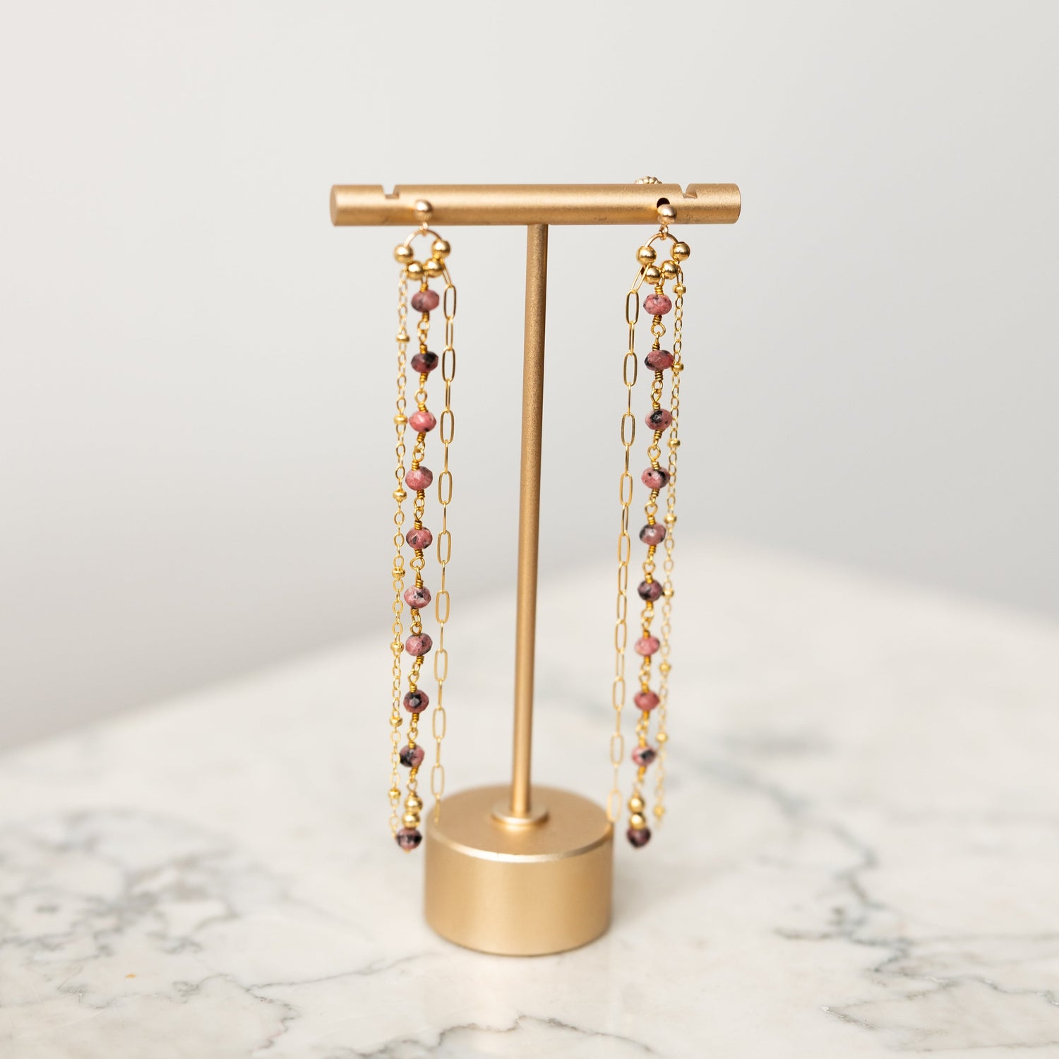 These elegant earrings are made from beautiful pink-rose toned Rhodochrosite stones & 14k goldfilled chain and posts.
