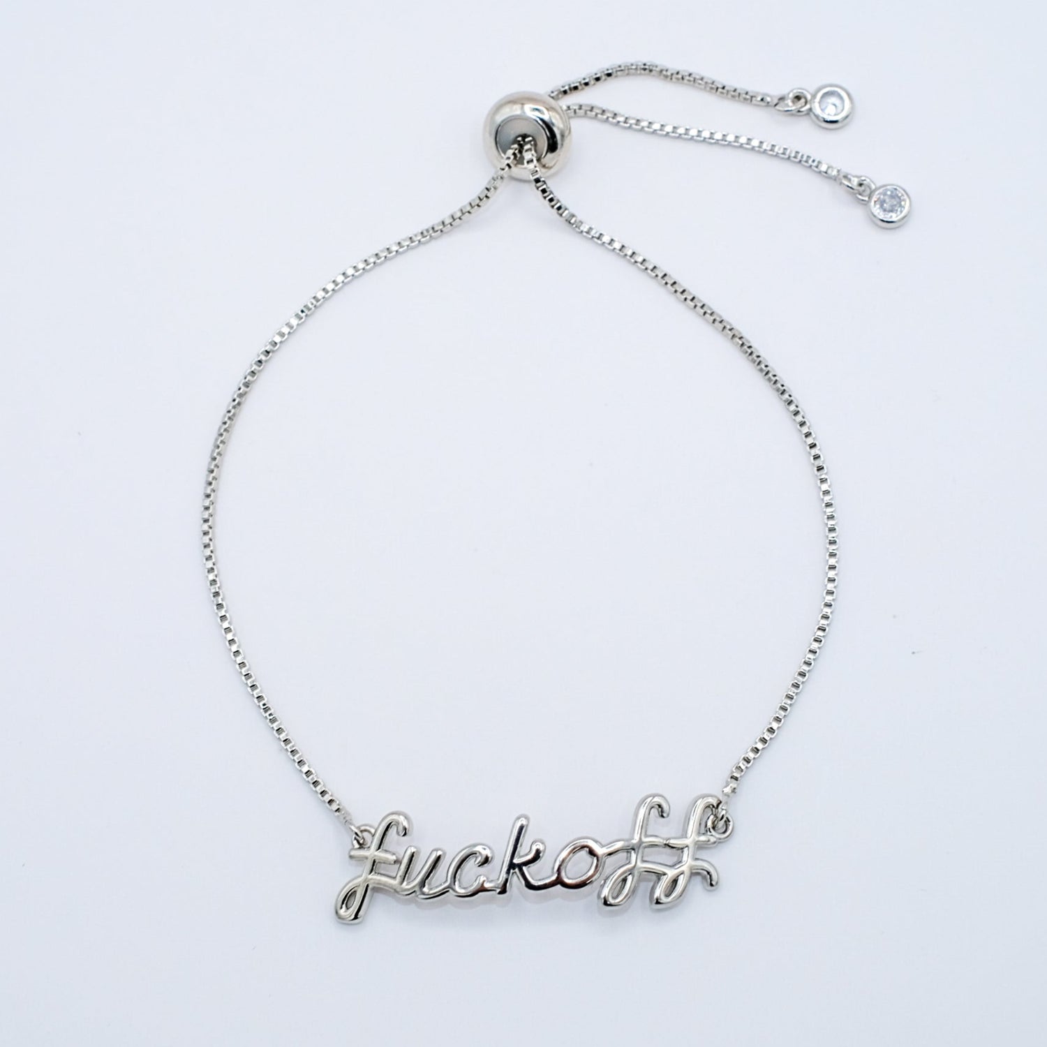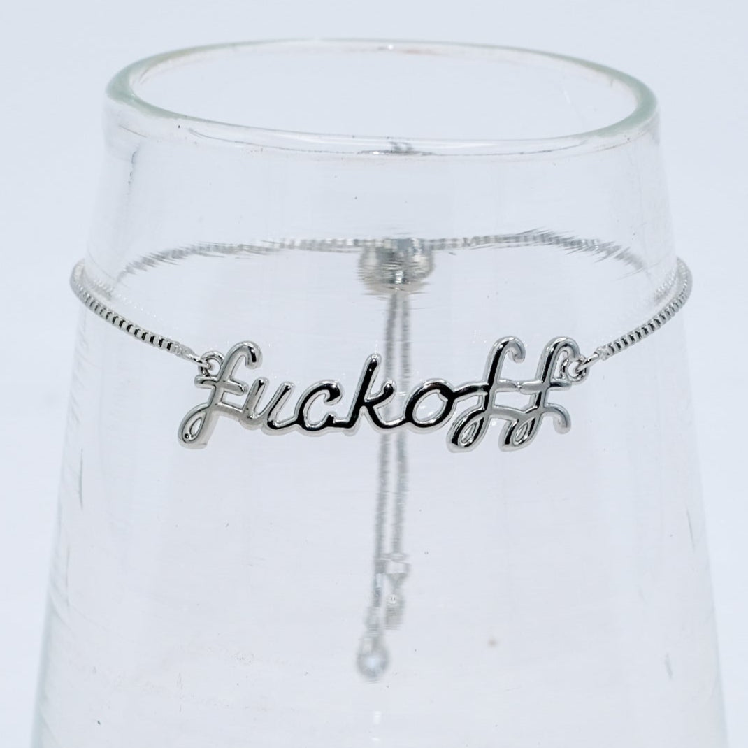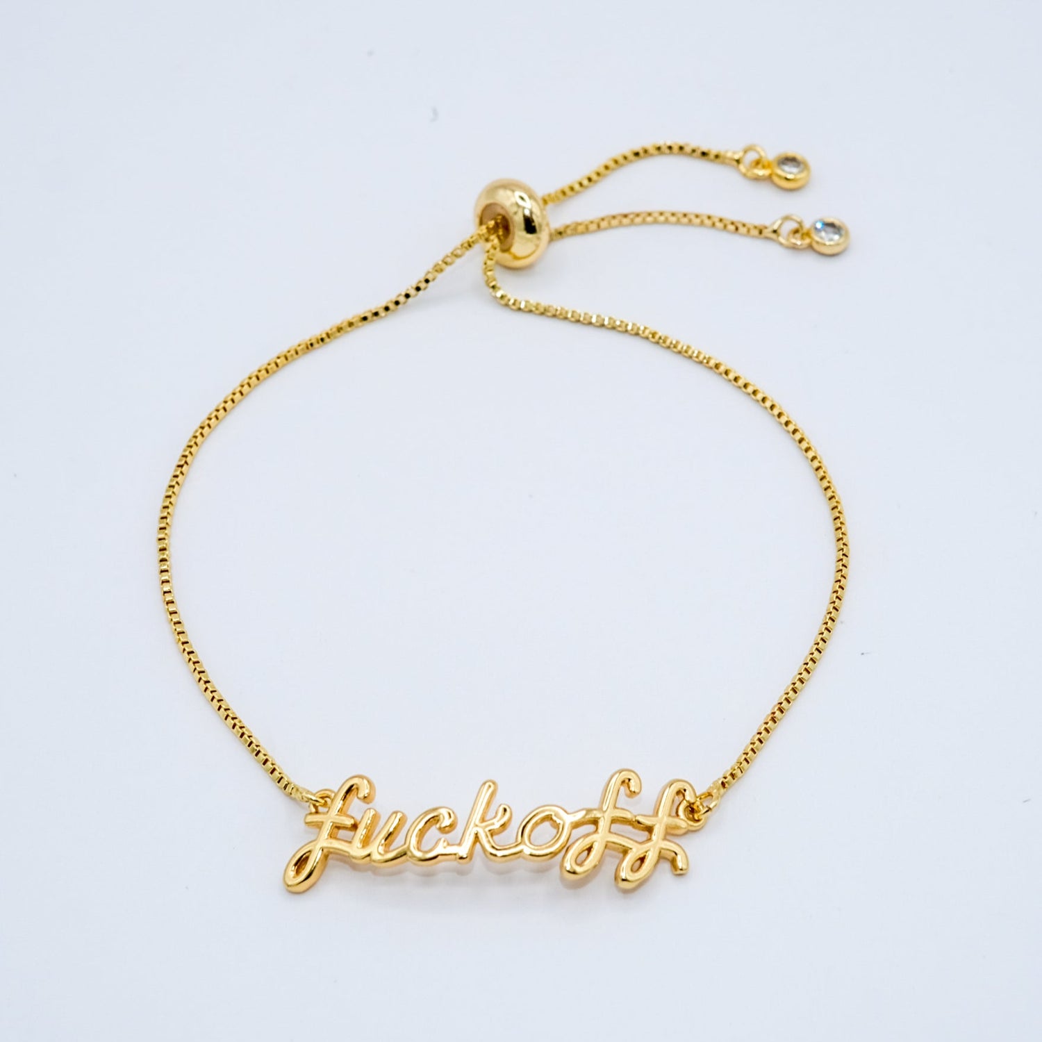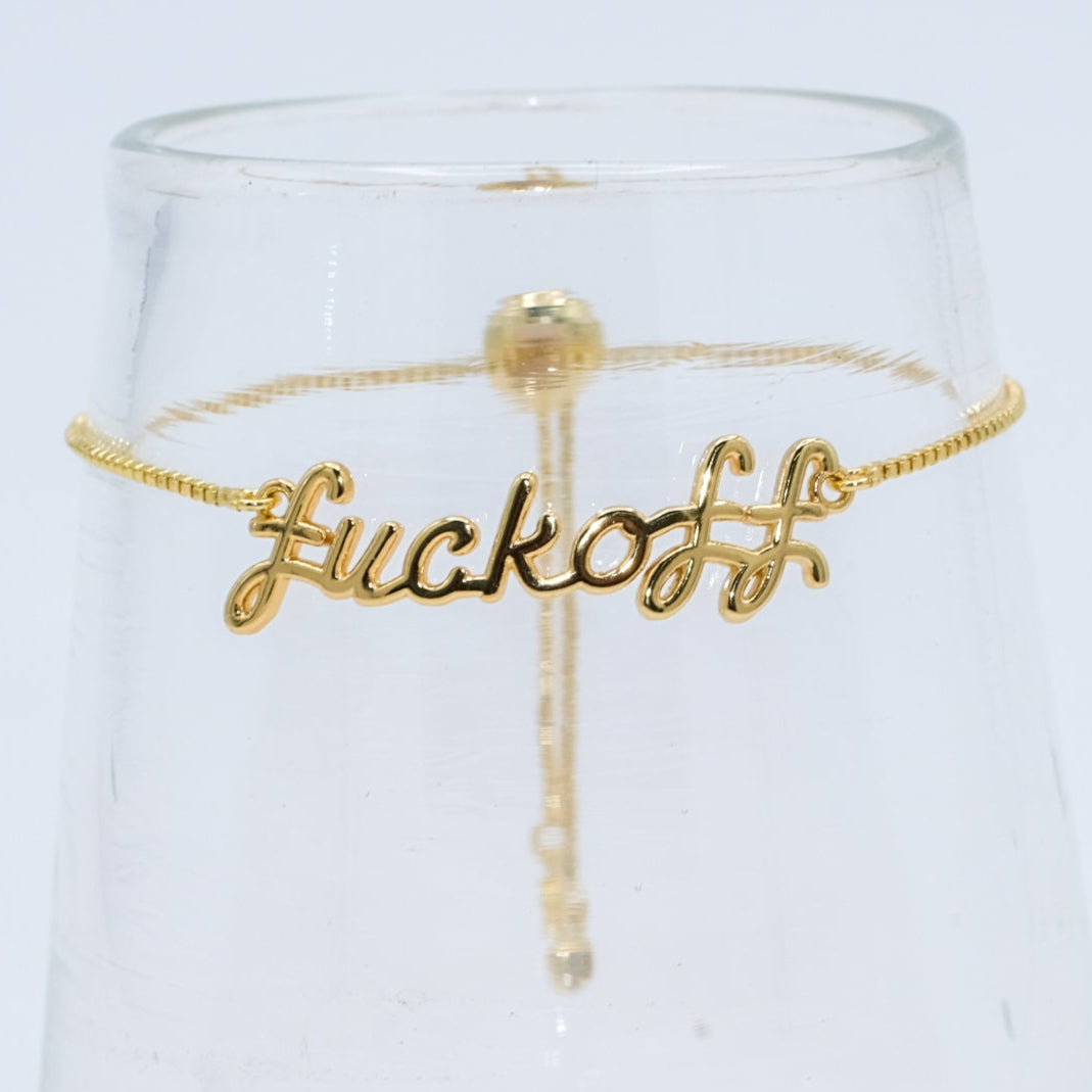 This adjustable bracelet features a charm in elegant cursive that boldly says “Fuck Off” ...a sassy & stylish reminder to protect your energy. Luxe, lightweight, stackable, and effortlessly wearable.