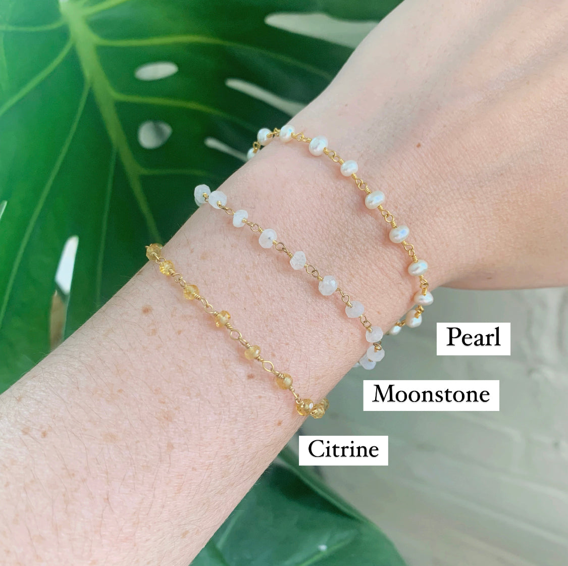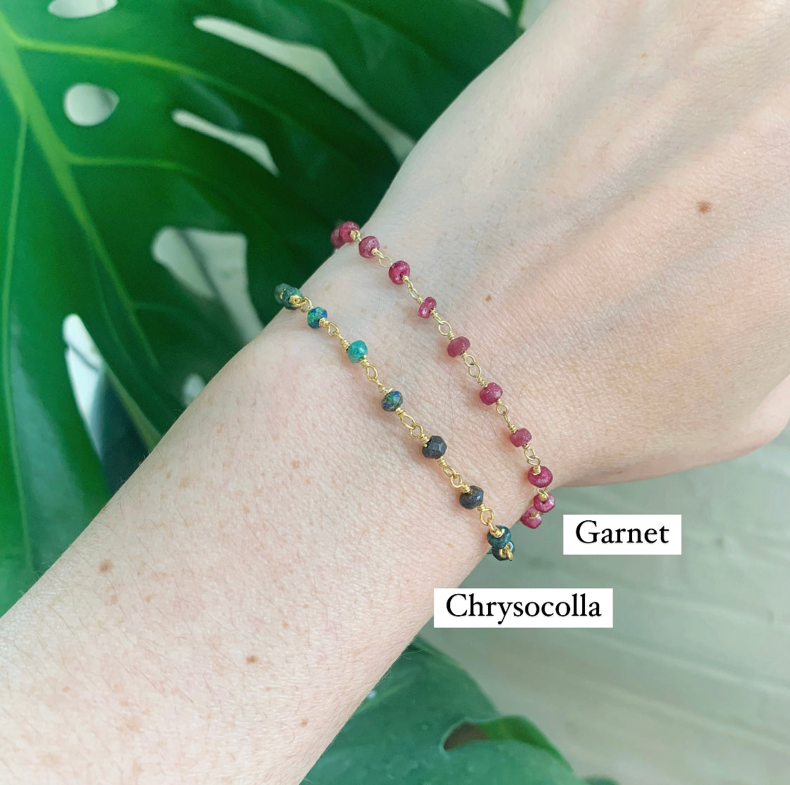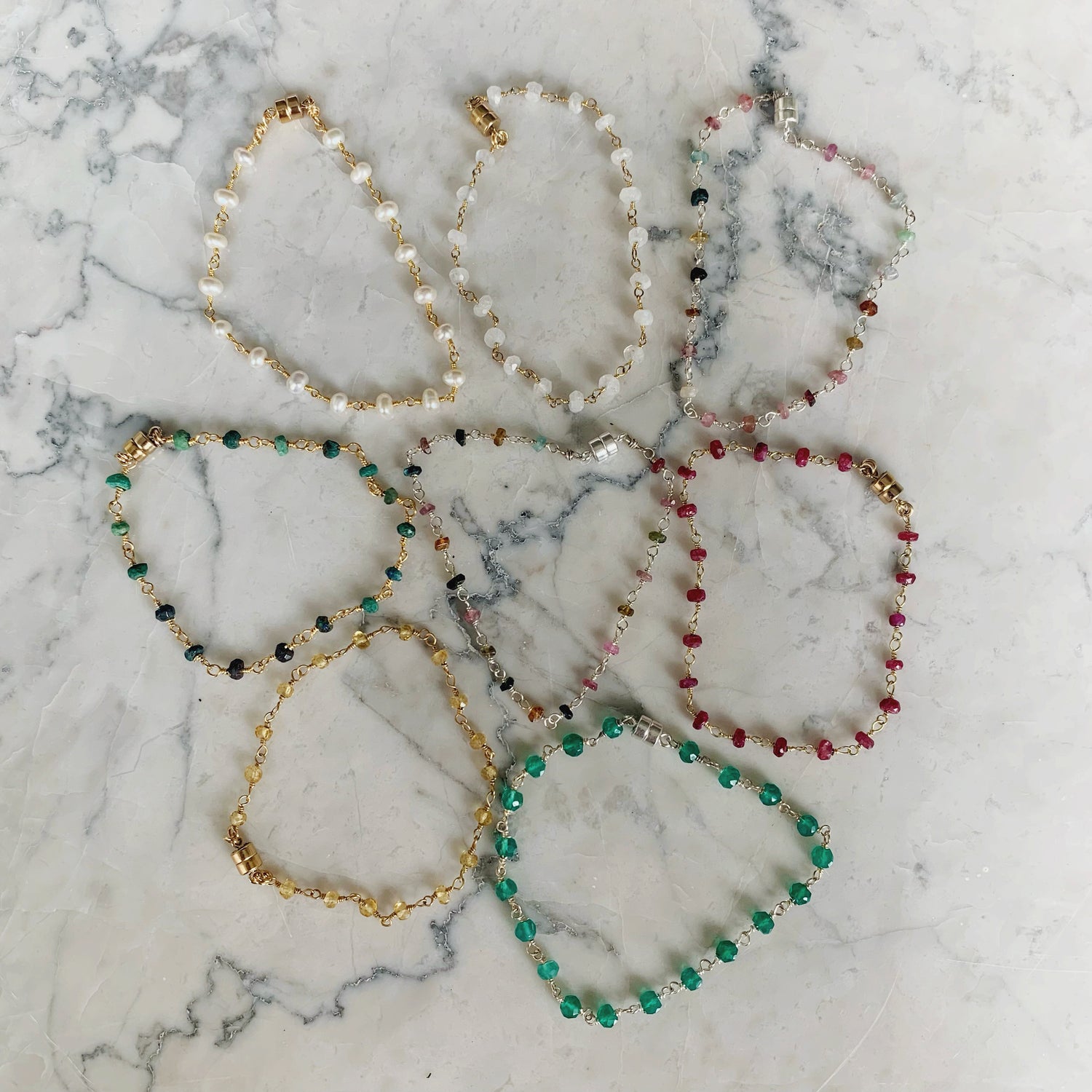 Beautiful gemstone rosary chain is connected with a strong 14k gold fill magnetic clasp. These are perfect for people who hate wearing bracelets with those hard to clasp lobster closures!
