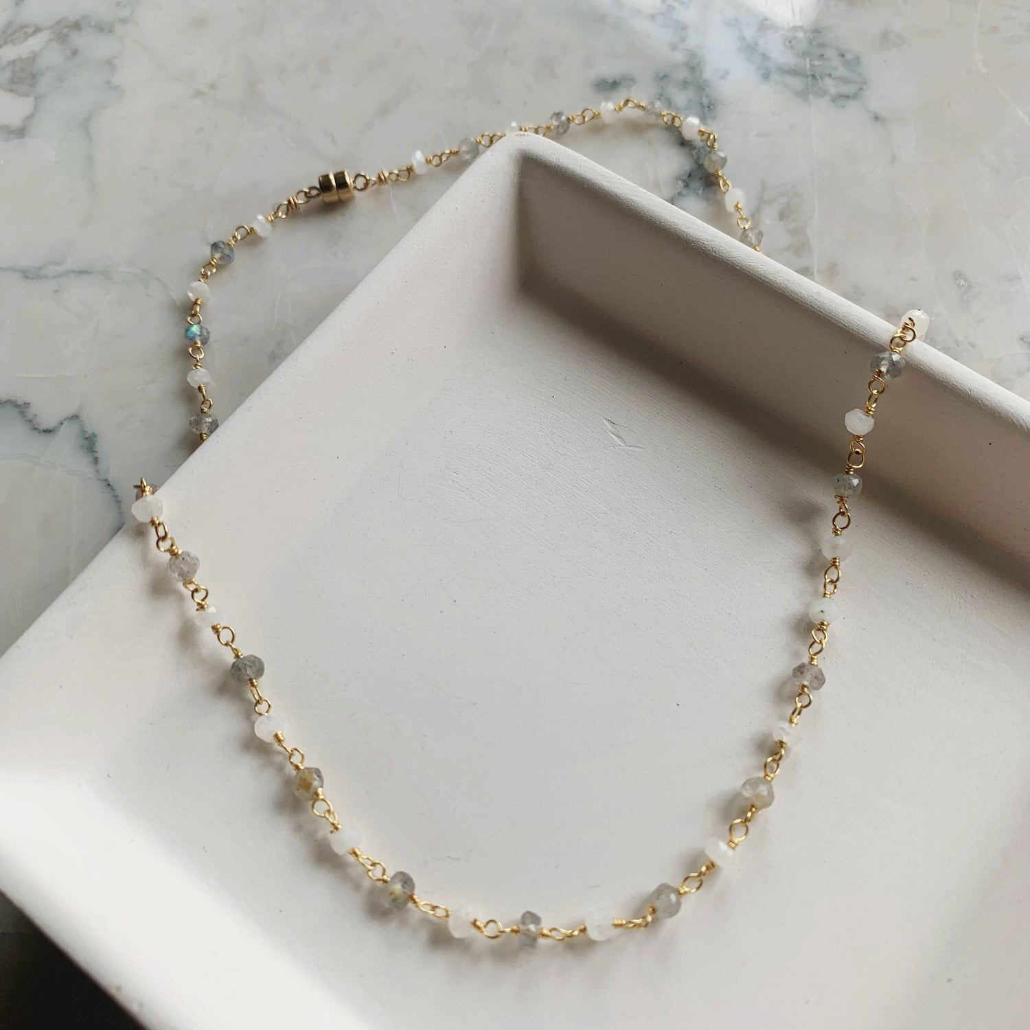 16” long with a strong magnetic clasp in 14k Goldfill or Sterling Silver.