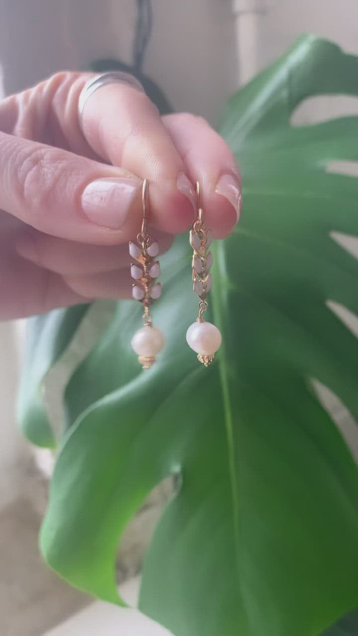 These gorgeous little babies are made from freshwater pearls and our white enamel chevron chain that is a customer favorite!